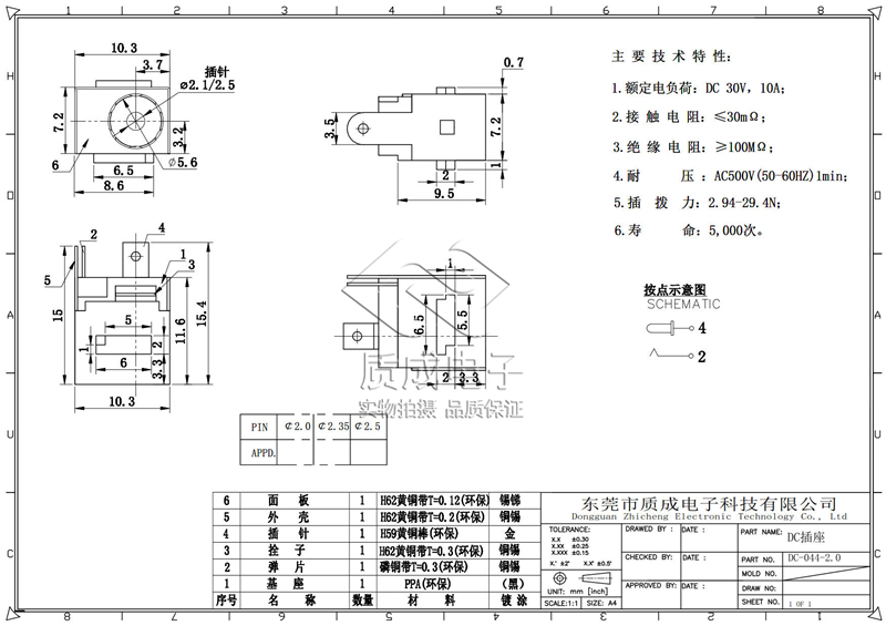 DC-050-2.0針?biāo)哪_臥式貼片大電流電源插座 耐高溫助燃