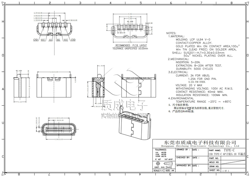 • 型號:TYPE-C 6P立貼5.1不漏舌
