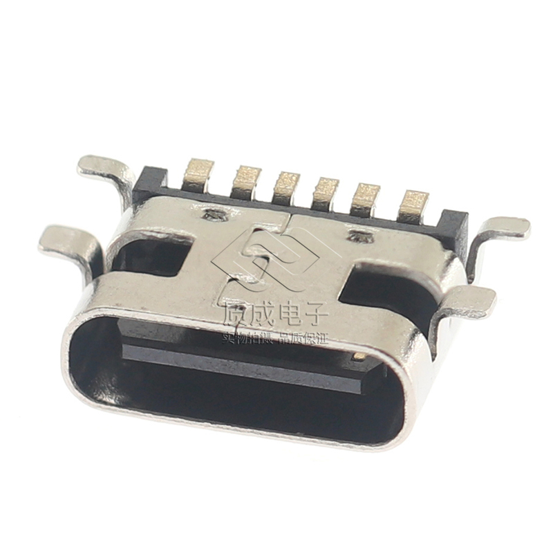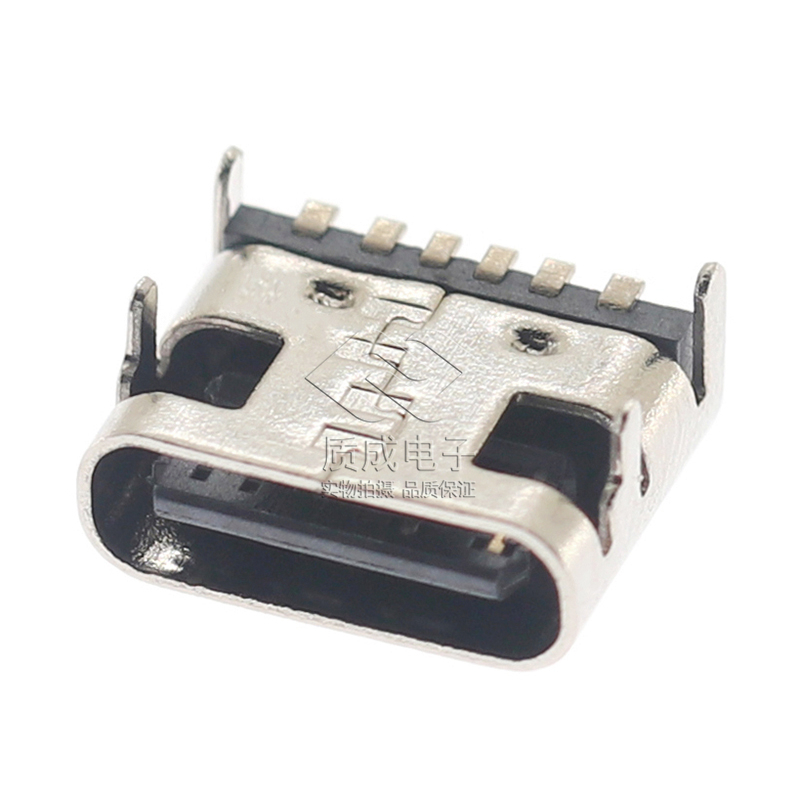 TYPE-C連接器6PIN單排臥式板上四腳固定全貼SMT 大電流快充母座