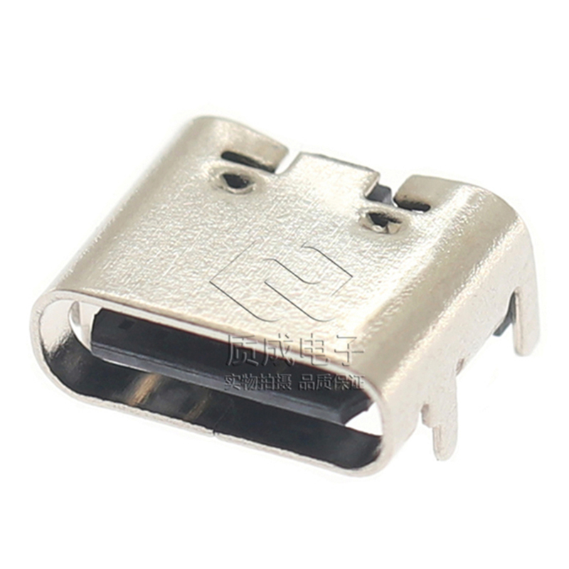 TYPE-C連接器6PIN單排臥式板上四腳固定全貼SMT 大電流快充母座